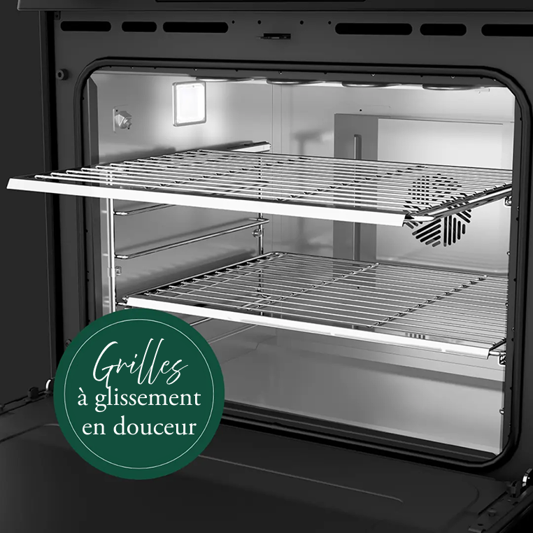 Notre système de grilles en nickel permet de déplacer les plateaux et les casseroles lourds sans effort. Ajustez les grilles à différentes positions sans problème, grâce à notre conception innovante qui empêche de coller et garantit un fonctionnement en douceur.