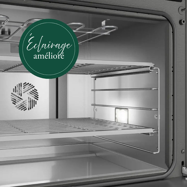 Découvrez les joies d'une cuisson parfaitement illuminée grâce à un éclairage amélioré. Surveillez vos repas avec précision, grâce à deux lampes halogènes placées stratégiquement qui éclairent sans interrompre le processus de cuisson.